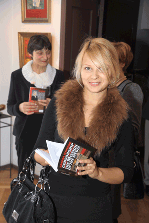 Gints Bude un viņa modeļu aģentūras preses sekretārs Dainis Bērziņš ir pirmie, kas saņēma autores autogrāfus.